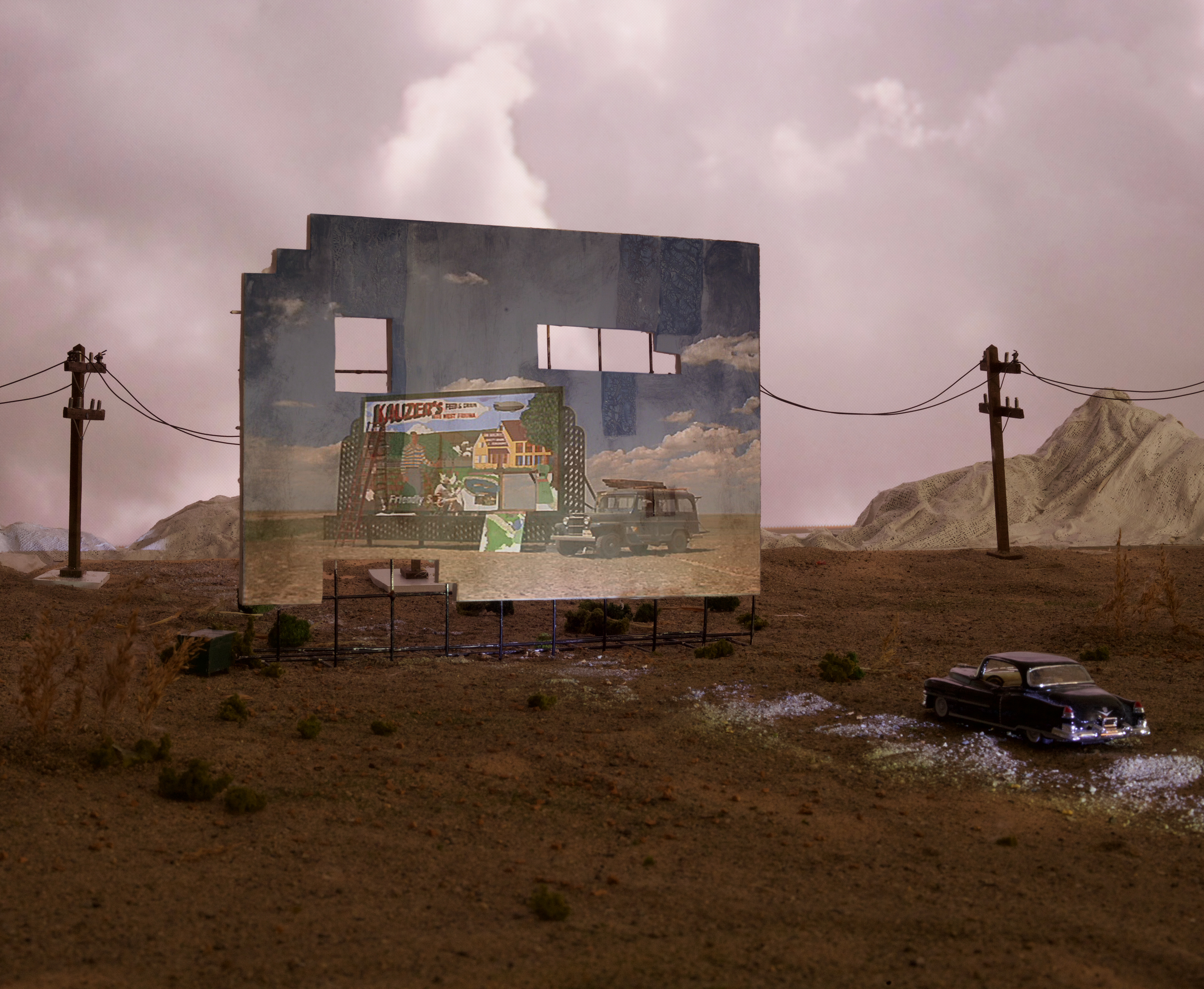 An abandoned miniature drive in complete with old drive in screen. Photograph Rick Finkelstein.