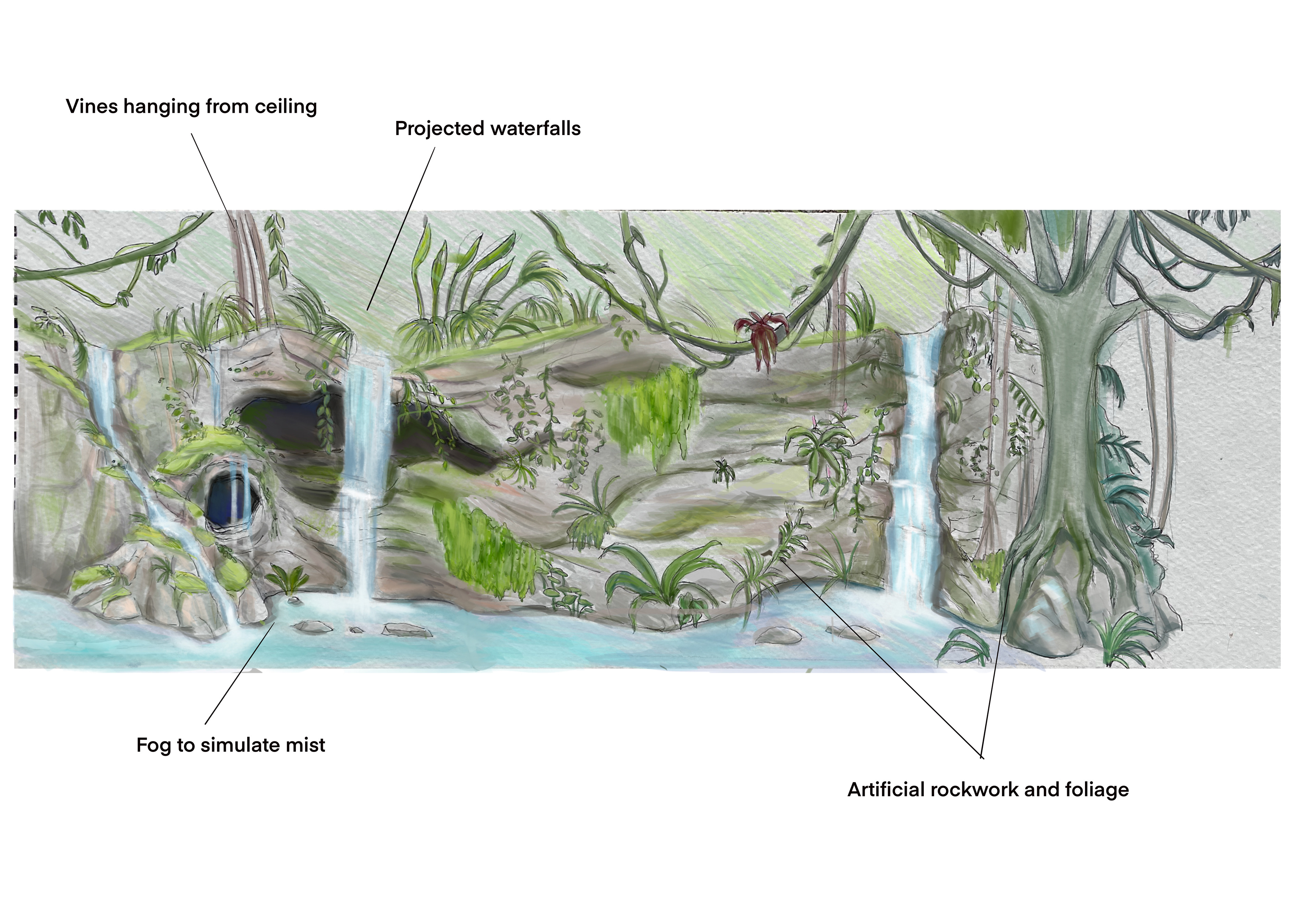 Elevation design and illustration for a dark ride created as part of Terratech in the educational program, Nextgen showcase.